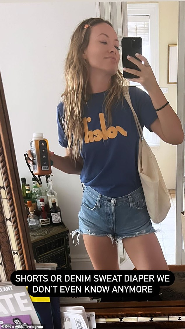 Olivia Wilde muestra sus muslos tonificados mientras se refiere a sus pantalones cortos como un “pañal de sudor de mezclilla”…