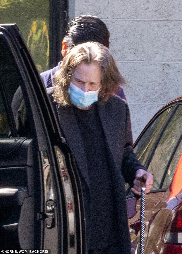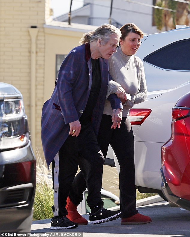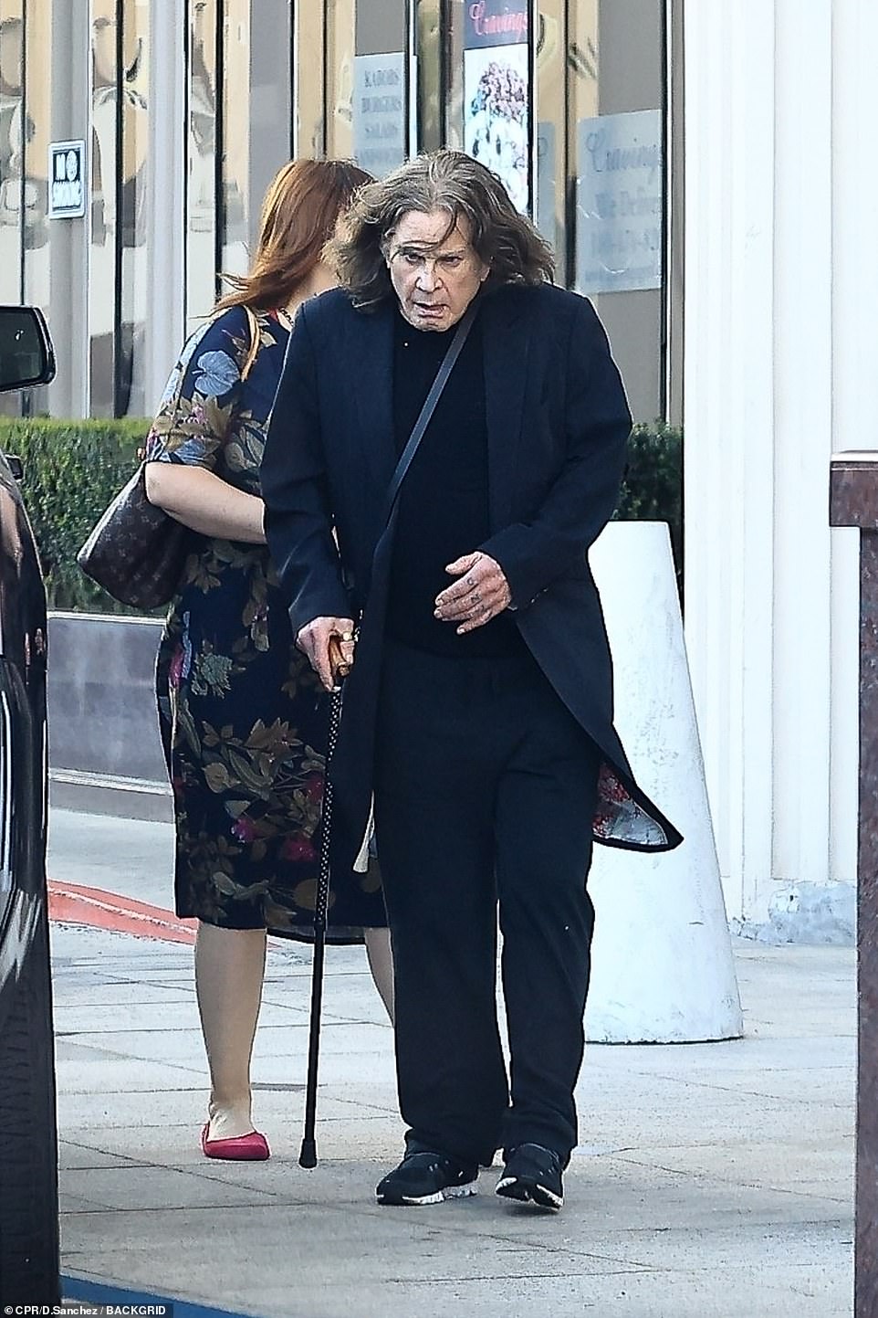 El frágil Ozzy Osbourne se apoyó en un amigo cuando llegó a una clase de gimnasia en Los Ángeles el…