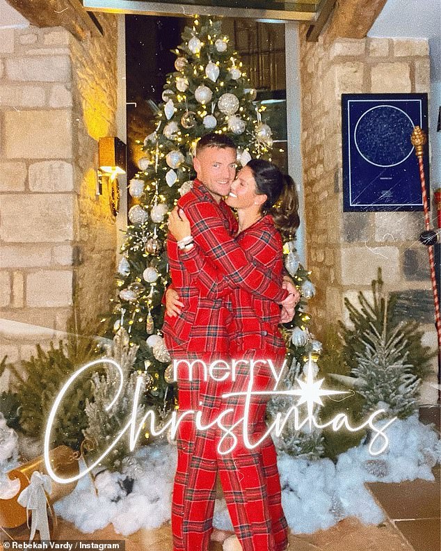 Rebekah Vardy y su esposo Jamie hicieron una exhibición acogedora mientras posaban en pijamas a juego en la víspera de…