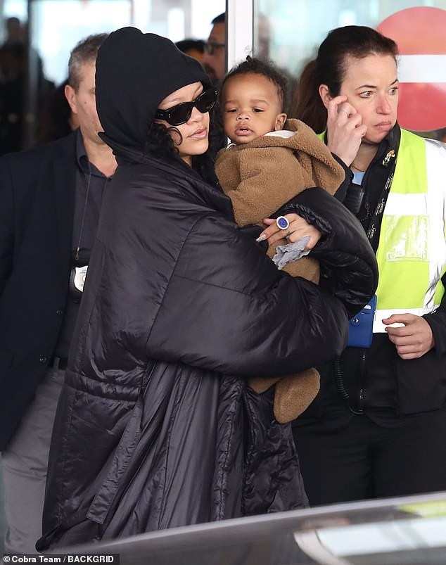 FOTO EXCLUSIVA: ¡La primera semana de la moda del bebé! Rihanna embarazada acuna a su hijo, de nueve meses, mientras…