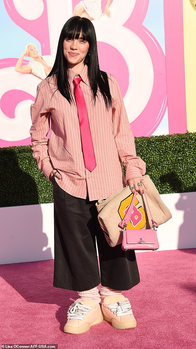 Dua Lipa mostró una alegre sonrisa mientras posaba detrás de escena mientras se unía a sus coprotagonistas de Barbie en…