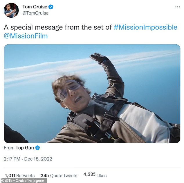 Tom Cruise muestra su lado temerario cuando salta del avión para la nueva promoción de Misión: Imposible después de agradecer…