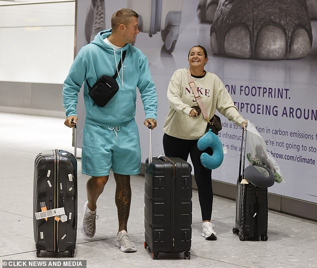 Jacqueline Jossa and her husband Dan Osborne were all smiles as they arrived back at Heathrow Airport on Friday after…