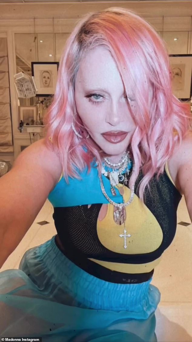 Madonna, de 64 años, muestra un rostro increíblemente libre de arrugas con cejas decoloradas y labios pintados… antes de beber…
