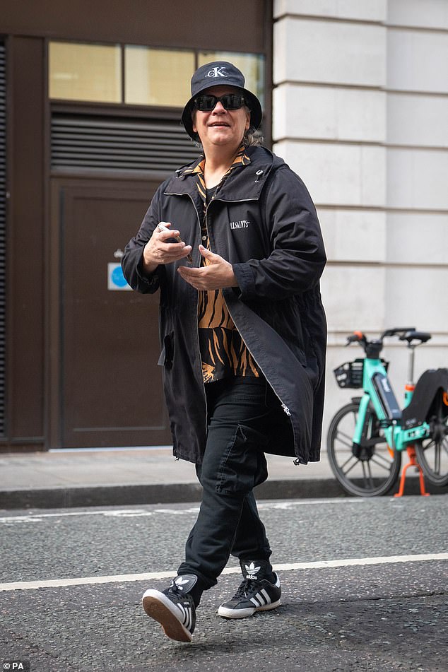 Helena Bonham Carter se ve elegante con un vestido verde y un chal gris mientras se dirige a los estudios…